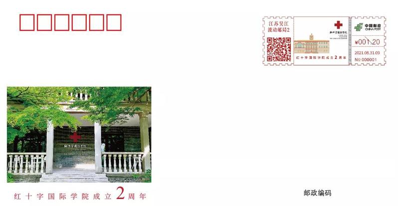 8月31日是红十字国际学院成立2周年纪念日。经中国邮政批准,江苏吴江邮局申请的“红十字国际学院成立2周年”数字防伪邮资机宣传戳(自贴型)于8月31日正式启用。同时发行邮资纪念封一枚。为感谢对红十字国际学院建设的参与和支持,学院将向包括联合创办人、联合发起人、捐赠人、专家咨询委员会、授课专家教授在内的社会各界人士实寄一枚电子邮资纪念封,以作纪念。