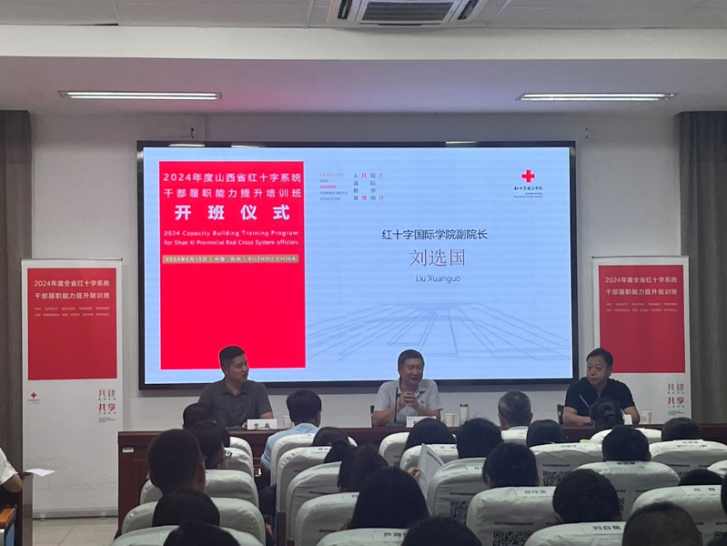 8月12日,2024年度山西省红十字系统干部履职能力提升培训班开班仪式在苏州大学天赐庄校区举行。山西省红十字会赈济救护部二级调研员徐俊肇及各市主要负责同志等68名领导干部参加了为期5天的培训。