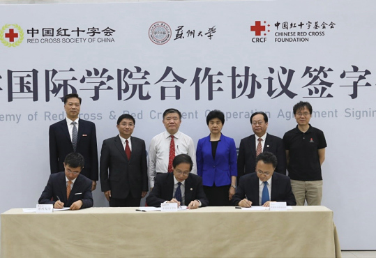 2019年6月30日,中国红十字会总会、苏州大学、中国红十字基金会在京签署创办红十字国际学院合作协议。全国人大常委会副委员长、中国红十字会会长陈竺出席签字仪式,并与中国红十字会党组书记、常务副会长梁惠玲、中国红十字会副会长兼秘书长王平、苏州大学党委书记江涌、副校长杨一心、中国红基会常务副理事长兼秘书长孙硕鹏等领导一起见证了协议签字。签字仪式由梁惠玲主持,中国红十字会副会长王汝鹏、苏州大学校长熊思东、中国红十字基金会理事长郭长江分别代表合作方在协议上签字。