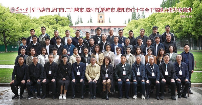 4月24日,驻马店、周口、三门峡、漯河、鹤壁、濮阳红十字干部能力提升培训班的开班仪式在苏州大学红十字国际学院举行。驻马店市红十字会党组书记、常务副会长孔艾华、周口市红十字会调研员袁玉峰、漯河市红十字会副会长刘国防、鹤壁市红十字会副会长周苏阳等市红十字会的56名领导干部开启了为期5天的培训。