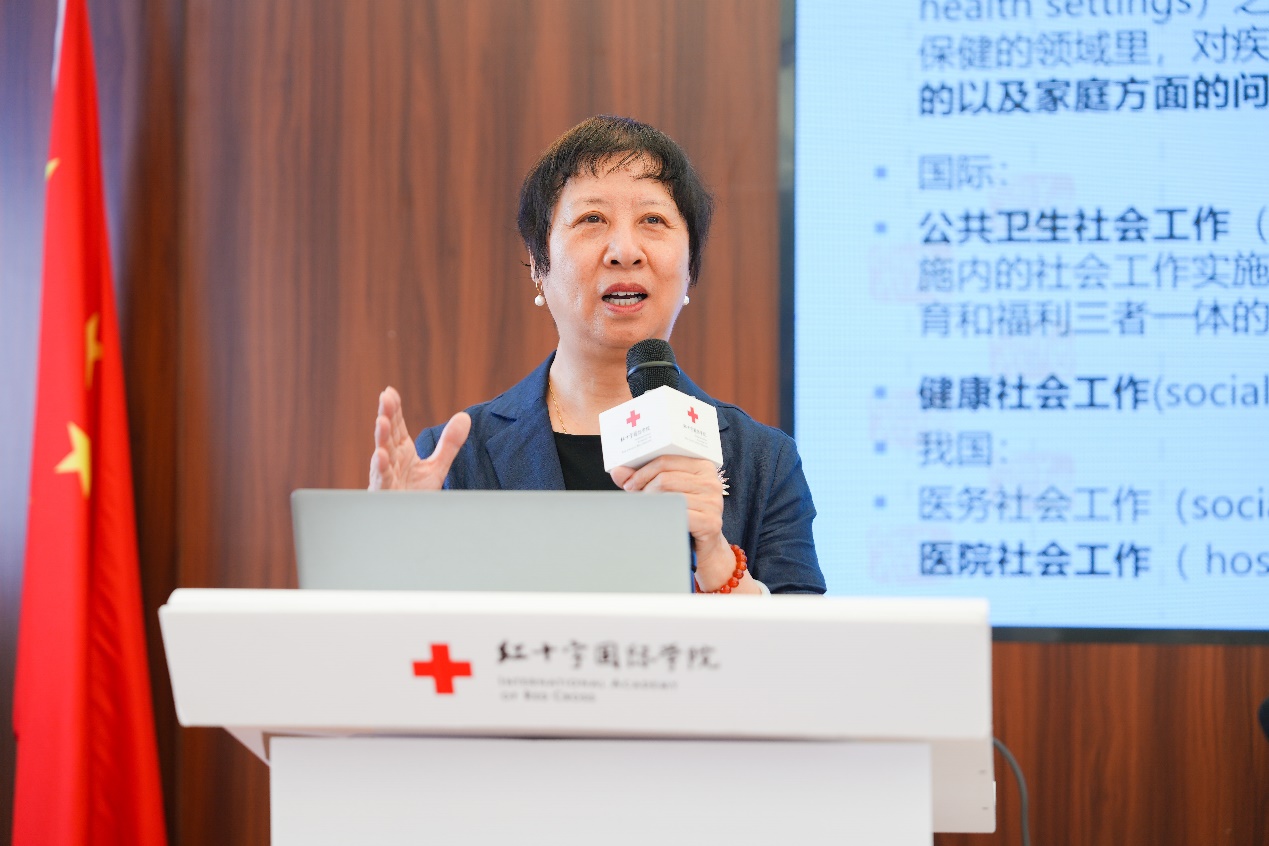 开班式结束后,北京大学社会学教授、博士生导师,全国社会工作硕士研究生教育指导委员会副主任,中国社会工作教育协会会长,中国社会工作学会学术委员会副主任,中国社会工作联合会副会长,林护杰出社会工作奖励项目执行人马凤芝以《新时代医务社会工作的发展机遇与前瞻态势:中央社会工作会议精神解读》为题,讲授开班第一课。