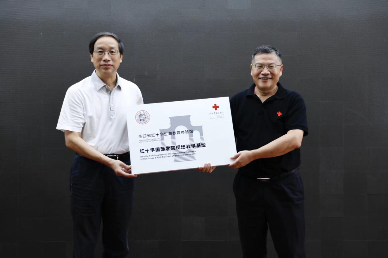 7月16日,红十字国际学院院长王汝鹏先后为浙江省红十字生命教育体验馆授牌“红十字国际学院现场教学基地”、为湖州市吴山区陆树藩纪念馆授牌“红十字国际学院教学研究基地”。至此,红十字国际学院校外教学研究基地已达6处。
