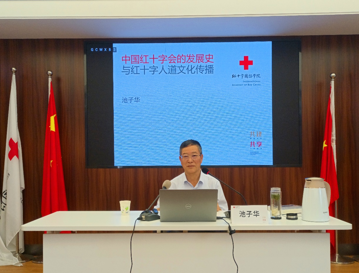本次培训为期5天。池子华以《中国红十字会的发展史与红十字人道文化传播》为题讲授了开班第一课。同时还开设了《“三献”工作与红十字事业高质量发展》、《大数据、融媒体时代的舆情危机与应对》、《我国红十字会组织发展与治理的前沿问题》、《习近平新时代中国特色社会主义思想》和《“博爱通”捐赠系统实操指南》等理论课程。