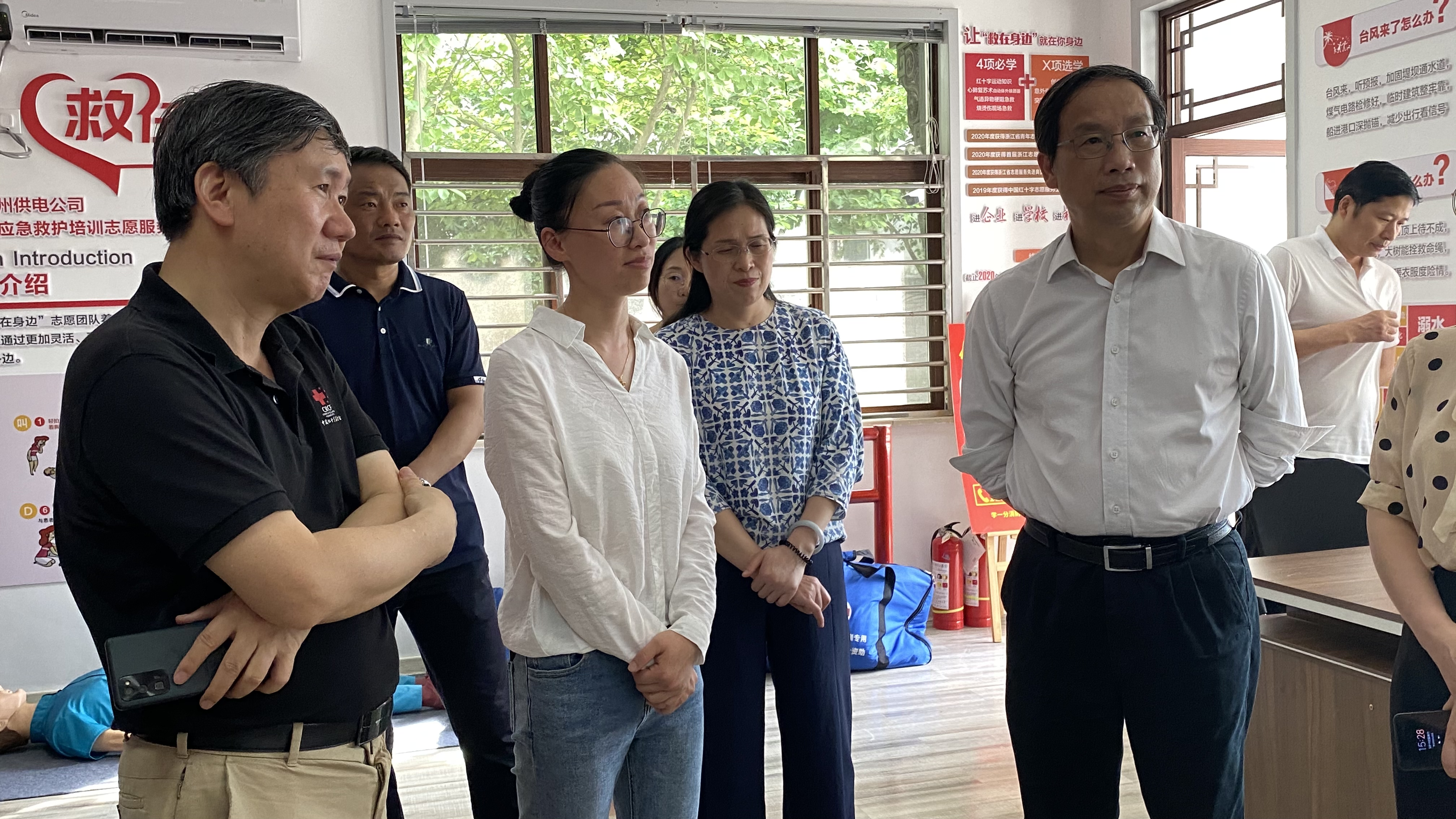 随后,王汝鹏一行前往吴兴区飞英街道,考察了墙壕里社区的红十字博爱家园。该博爱家园于今年5月8日世界红十字日正式开放启用,聚集了国网湖州供电公司“救”在身边红十字应急救护培训志愿服务队等一批优秀的志愿服务力量,为社区居民提供应急救护培训、社会心理救援、助老助困等志愿服务,被赞誉为“群众身边的红十字会”。